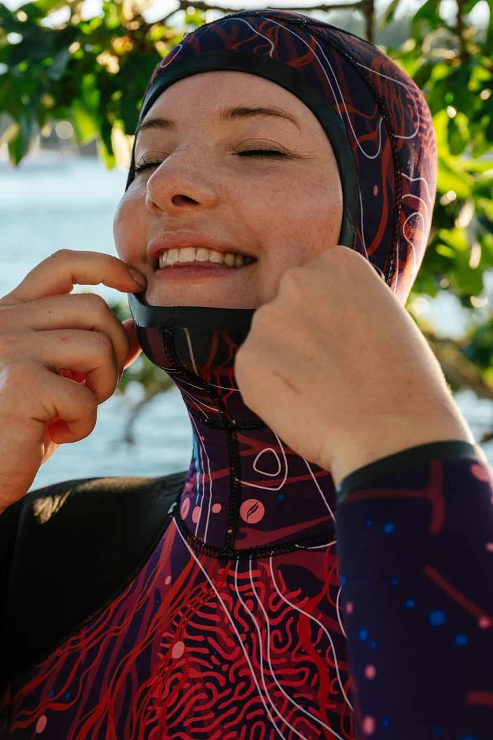 Panels inside the hood help to eliminate air trapped in between ears and neoprene. This migrates the suction effect in the ears and simplifies pressure equalization during dives.